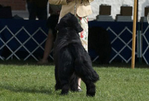 "The Newf’s history of water rescue and draft work demands strength, but certainly not speed. Newfoundlands are the Clydesdale horses of the dog world and, like the draft horse, should excel in endurance. They should be massive-boned and big-chested. Speed favors a lighter built, more rangy type animal - not desirable characteristics in a Clydesdale or a Newfoundland."- May Bernhard