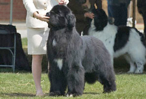 "The Breed Standard states: “The adult Newfoundland has a flat, water resistant, double coat that tends to fall back into place when rubbed against the nap. The outer coat is coarse, moderately long and full, either straight or with a wave. The undercoat is soft and dense, although it is often less dense during the summer months or in warmer climates. Hair on the face and muzzle is short and fine. The backs of the legs are feathered all the way down. The tail is covered with long dense hair. Excess hair may be trimmed for neatness.” There is a reason the Newfoundland coat to be so described. How could our dogs survive in the northern Atlantic Ocean with a coat that allows cold water to contact the skin? Those who compete is dog shows must never forget that the Newfoundland is a working dog. Look at your dog after a swim. Does he dry off immediately, or is he soaked to the skin? Remember that all the grooming in the world cannot change a bad dog into a good one and that grooming is not reproduced in the whelping box. Look under the coat to see how the dog is really structured.” - Mary Dewey